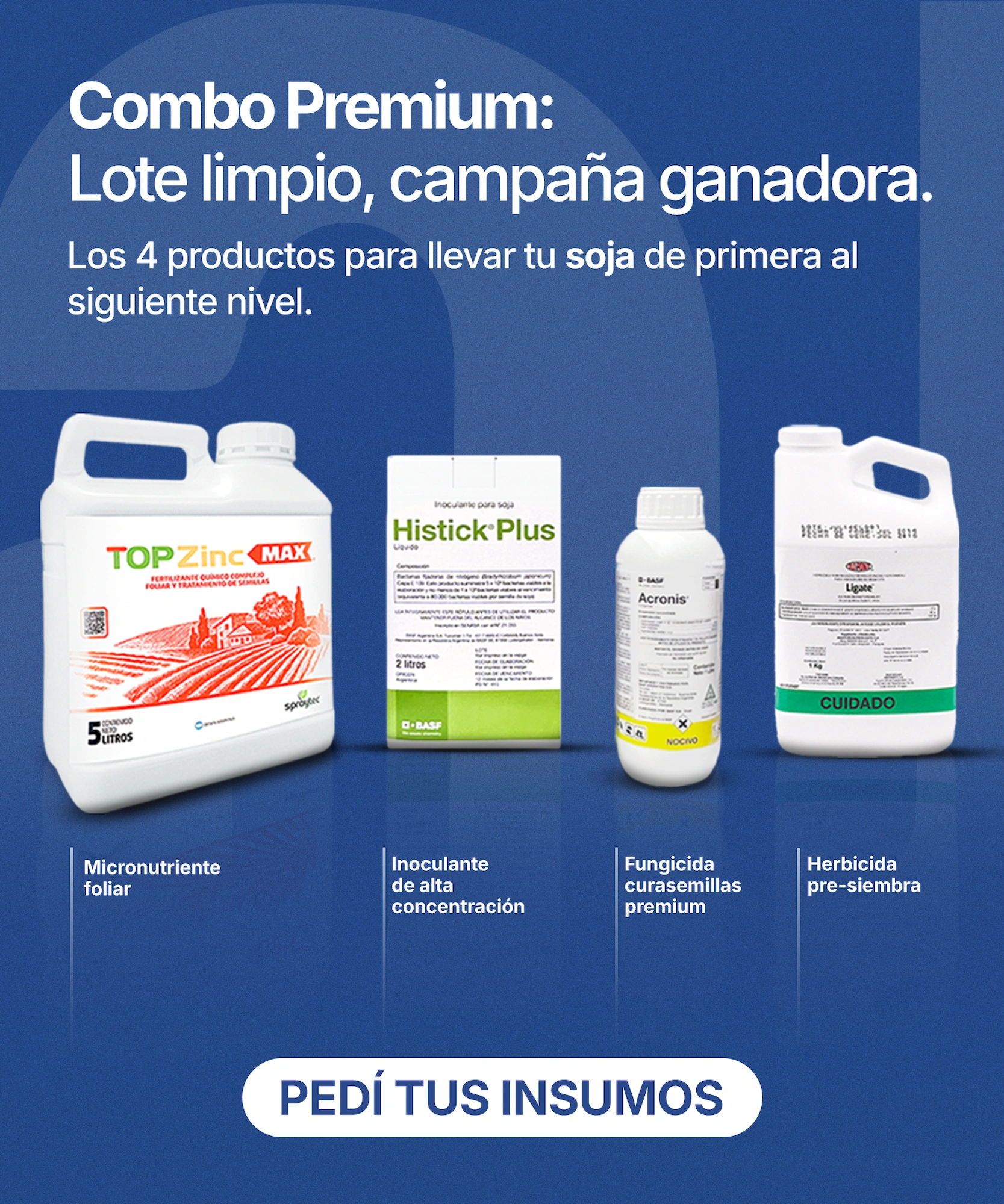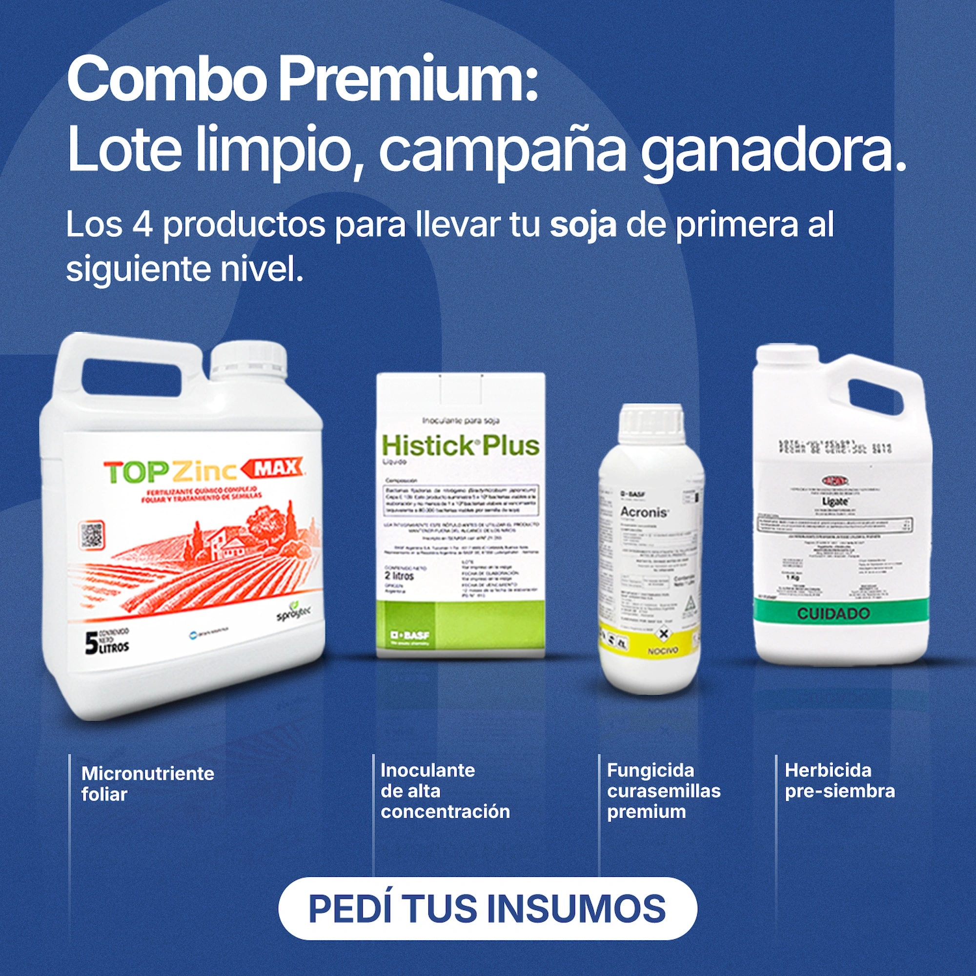 Fertilizantes, insecticidas, herbicidas, fungicidas y coadyuvantes.